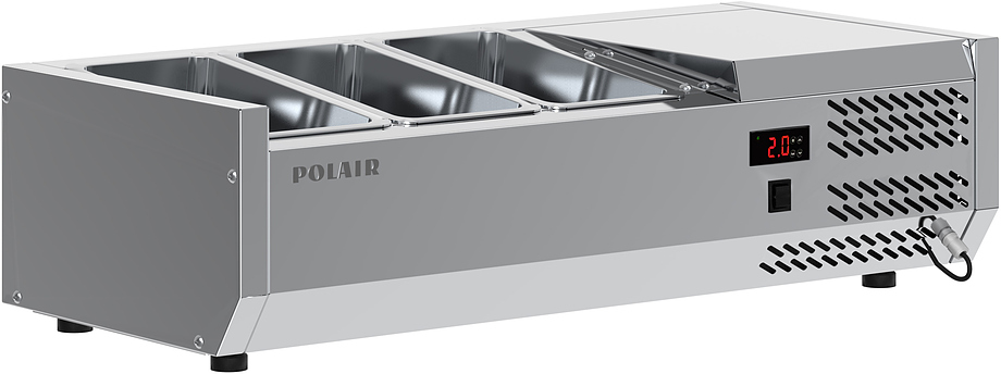 Холодильная витрина POLAIR VT1EN 1/3 предназначена для демонстрации, охлаждения и кратковременного хранения ингредиентов для пиццы и салатов на предприятиях общественного питания и торговли. Обшивка корпуса шкафа изготовлена из нержавеющей стали и обеспечивает механическую прочность и долговечность витрины. Оборудование рассчитано на работу при температуре окружающей среды до 32 °C и относительной влажности воздуха до 80%.