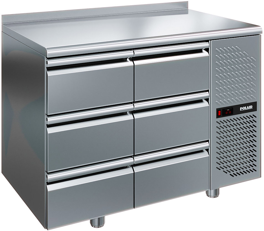 Холодильный стол POLAIR TM2GN-03-G серии Grande предназначен для хранения продуктов и обработки ингредиентов на рабочей поверхности на предприятиях общественного питания и торговли. Модель оснащена 3 ящиками среднего размера. Цельнозаливной корпус и двери изготовлены из нержавеющей стали, обеспечивающей механическую прочность, термоизоляцию, герметичность и долговечность стола. Оборудование рассчитано на работу при температуре окружающей среды до 43 °С и относительной влажности воздуха до 80%.