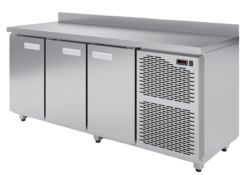 Морозильный стол АРКТО СХН-3-70 предназначен для хранения предварительно замороженных пищевых продуктов на предприятиях общественного питания и торговли. Модель оснащена расположенным сбоку агрегатным отсеком с фронтальной термовыводящей решеткой, столешницей с задним бортом, 3 распашными дверьми и электронным блоком управления с цифровым дисплеем. Корпус выполнен из высококачественной нержавеющей стали.