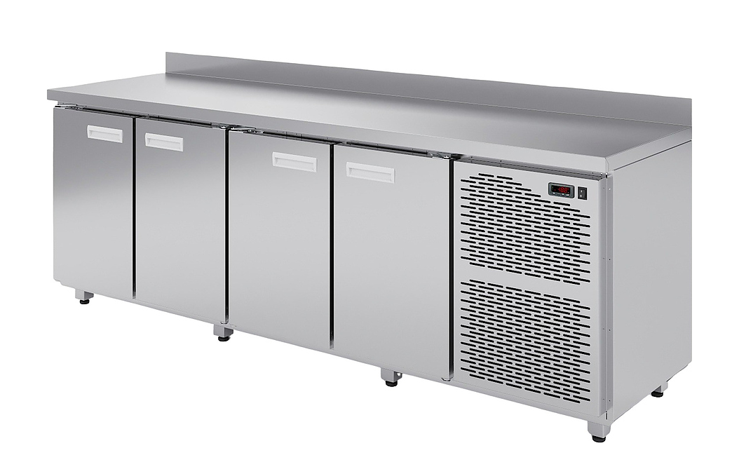 Морозильный стол АРКТО СХН-4-70 предназначен для хранения предварительно замороженных пищевых продуктов на предприятиях общественного питания и торговли. Модель оснащена расположенным сбоку агрегатным отсеком с фронтальной термовыводящей решеткой, столешницей с задним бортом, 4 распашными дверьми и электронным блоком управления с цифровым дисплеем. Корпус выполнен из высококачественной нержавеющей стали.