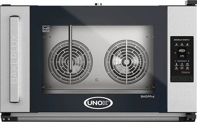 Печь конвекционная UNOX XEFR-04EU-ETLV Rossella серии BAKERLUX SHOP.Pro предназначена для допекания замороженных изделий и выпечки любых хлебобулочных и кондитерских изделий полного цикла на предприятиях общественного питания и торговли, в пекарнях и кондитерских. Модель оснащена электронным управлением с сенсорным ЖК-дисплеем диагональю 2,4" и светодиодным освещением камеры. Камера выполнена из нержавеющей стали AISI 304, направляющие - из хромированной стали.